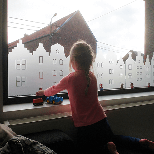 - Het aantal huisjes wordt aangepast aan de afmetingen van jouw raamfolie. Zo krijg je nooit halve huisjes en blijft het ontwerp mooi.