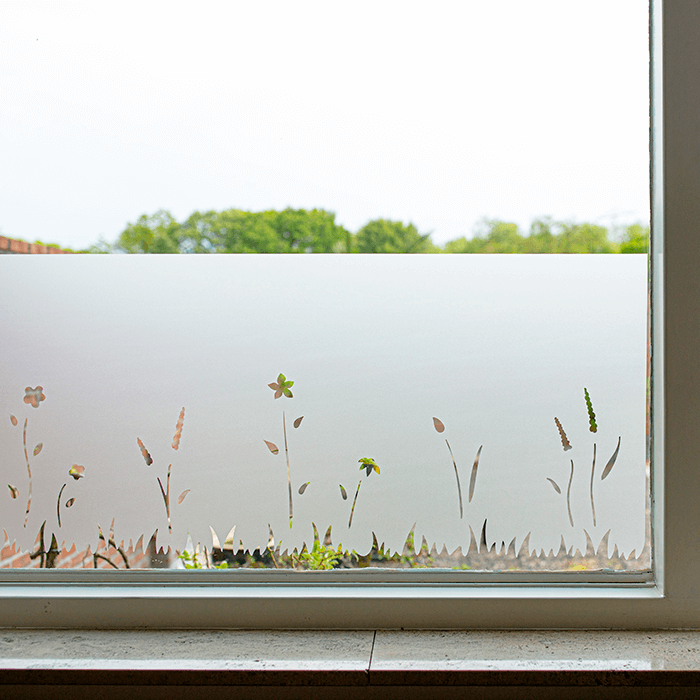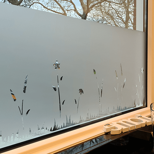 Horizontale statische raamfolie met uitgesneden motief | raamdecoratie