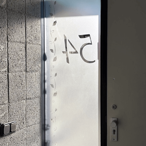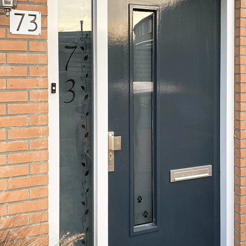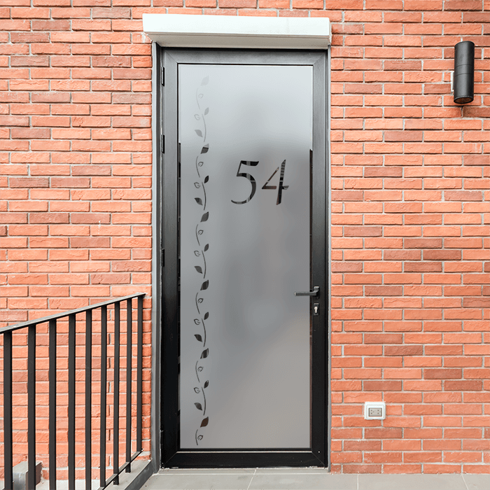 Gepersonaliseerde raamfolie • Chique bladeren met huisnummer