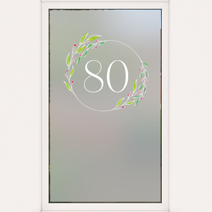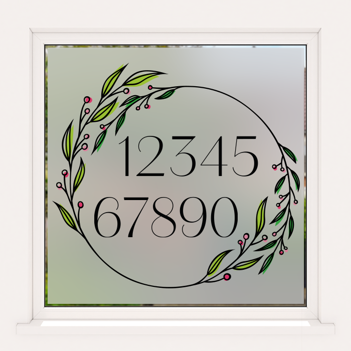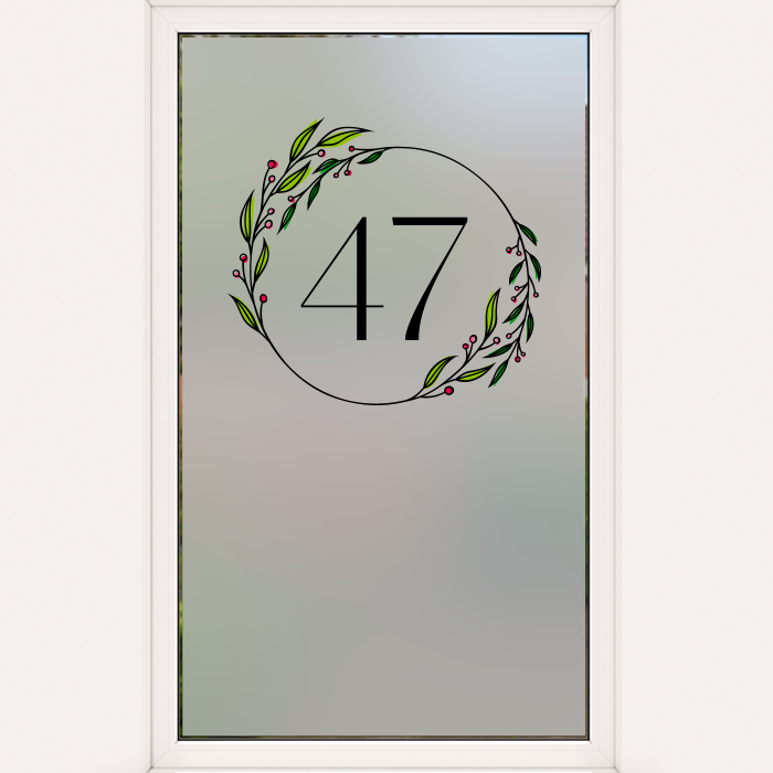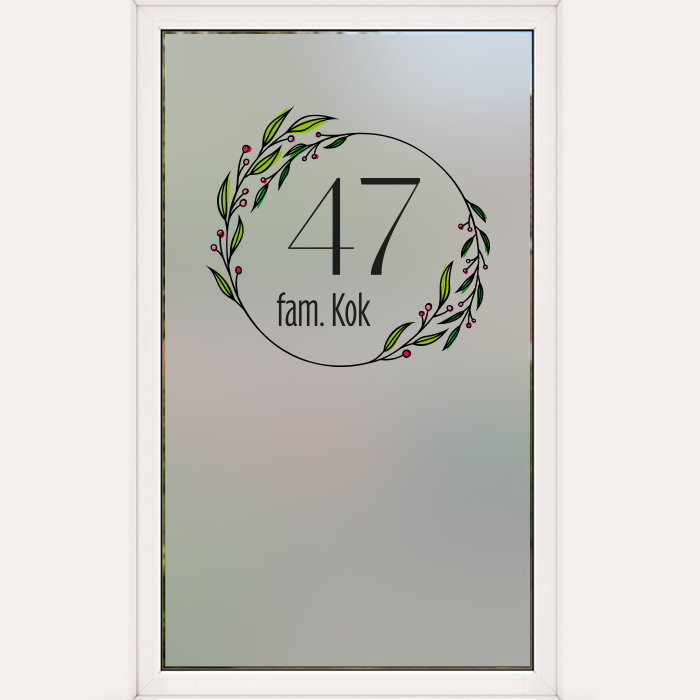 Gepersonaliseerde raamfolie • Huisnummer • Sierlijke krans