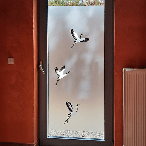 Een zen-ontwerp geïnspireerd door Japanse schilderkunst. De kraanvogels creëren een gevoel van rust en harmonie, terwijl ze een uniek accent bieden aan je raam.